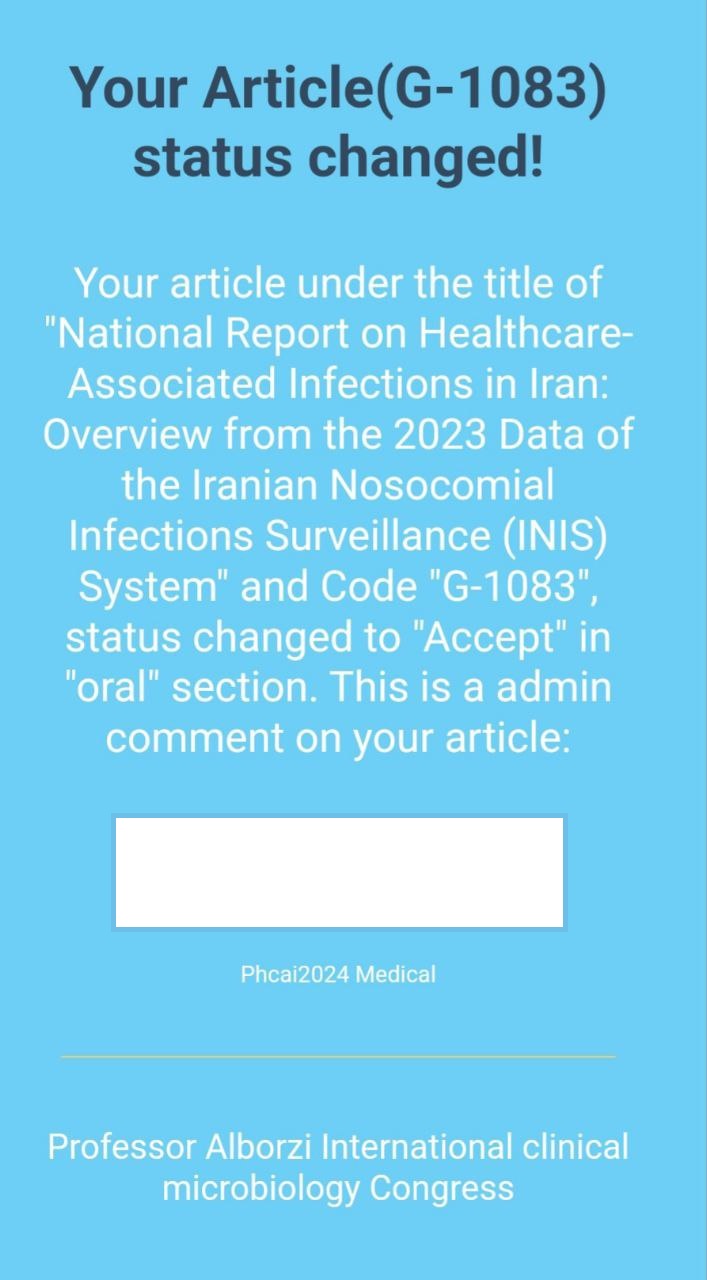 پذیرش مقاله National report on Healthcare-Associated Infections in Iran- 2023 بصورت اورال در 17 کنگره بین المللی میکروب شناسی استاد البرزی